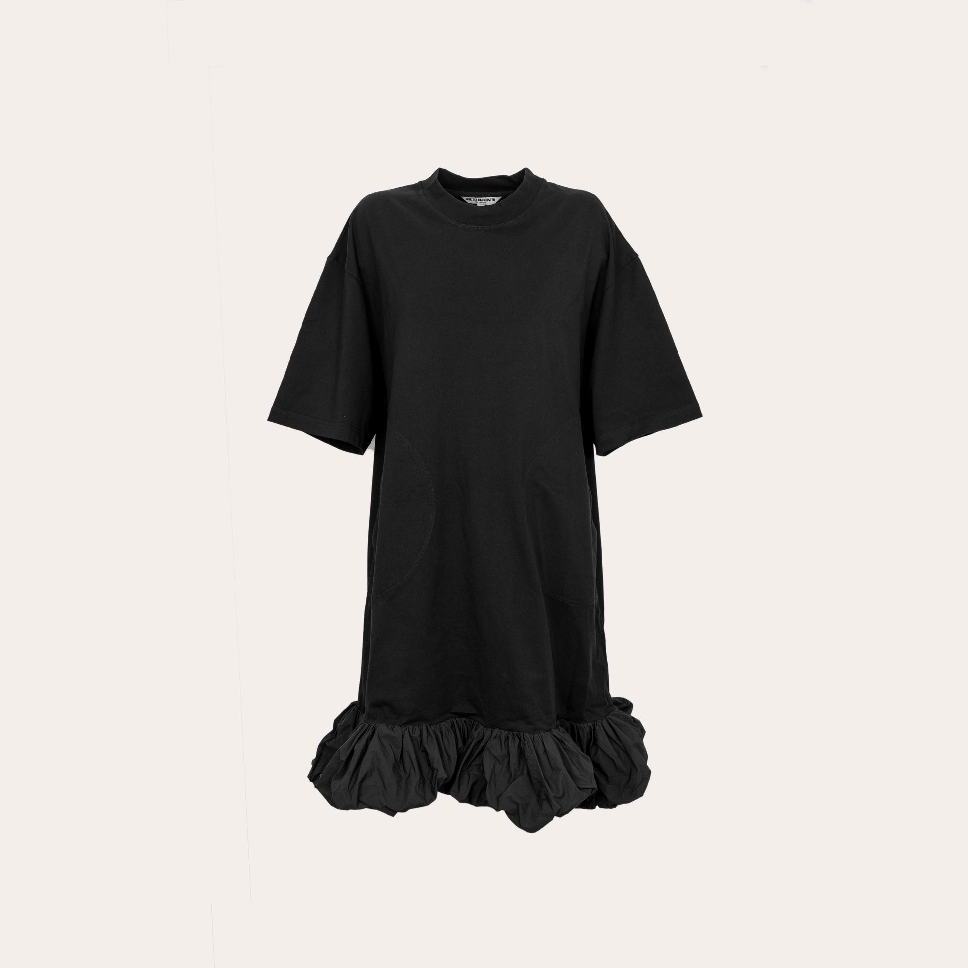A T-SHIRT DRESS WITH PUFFLE SKIRT HEM