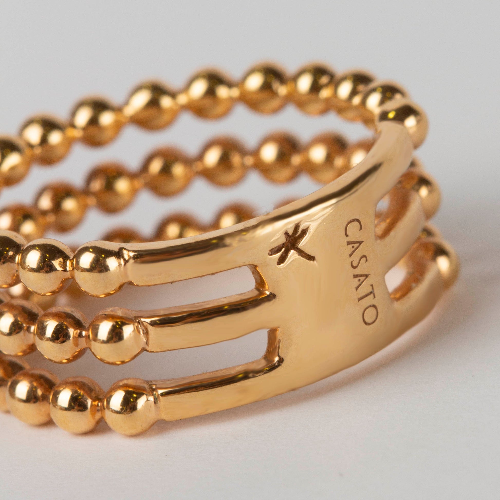 This Casato ring features a 3 row ring design in 18K rose gold with 0.36 ct diamonds. This piece is subtle yet sophisticated.